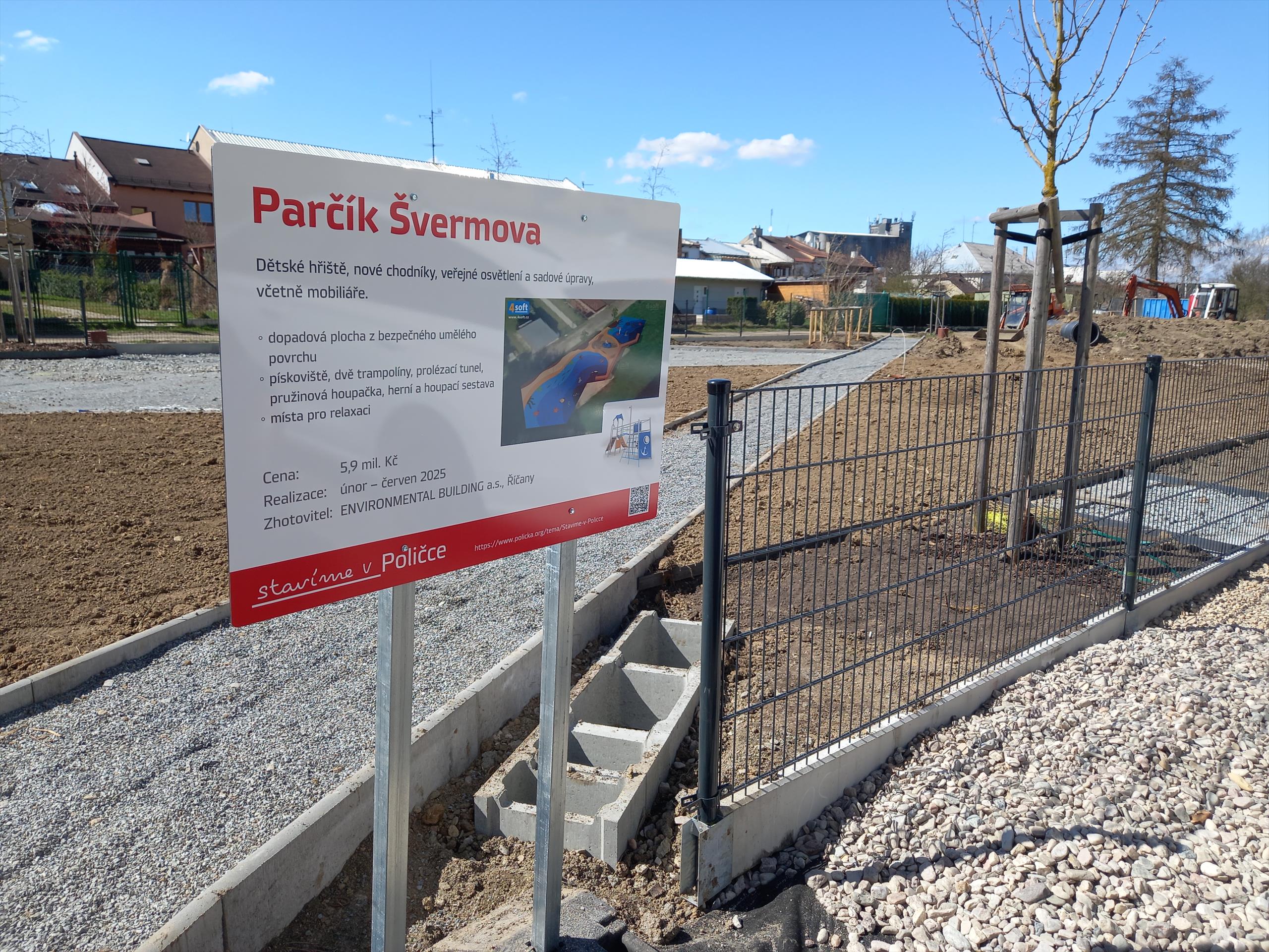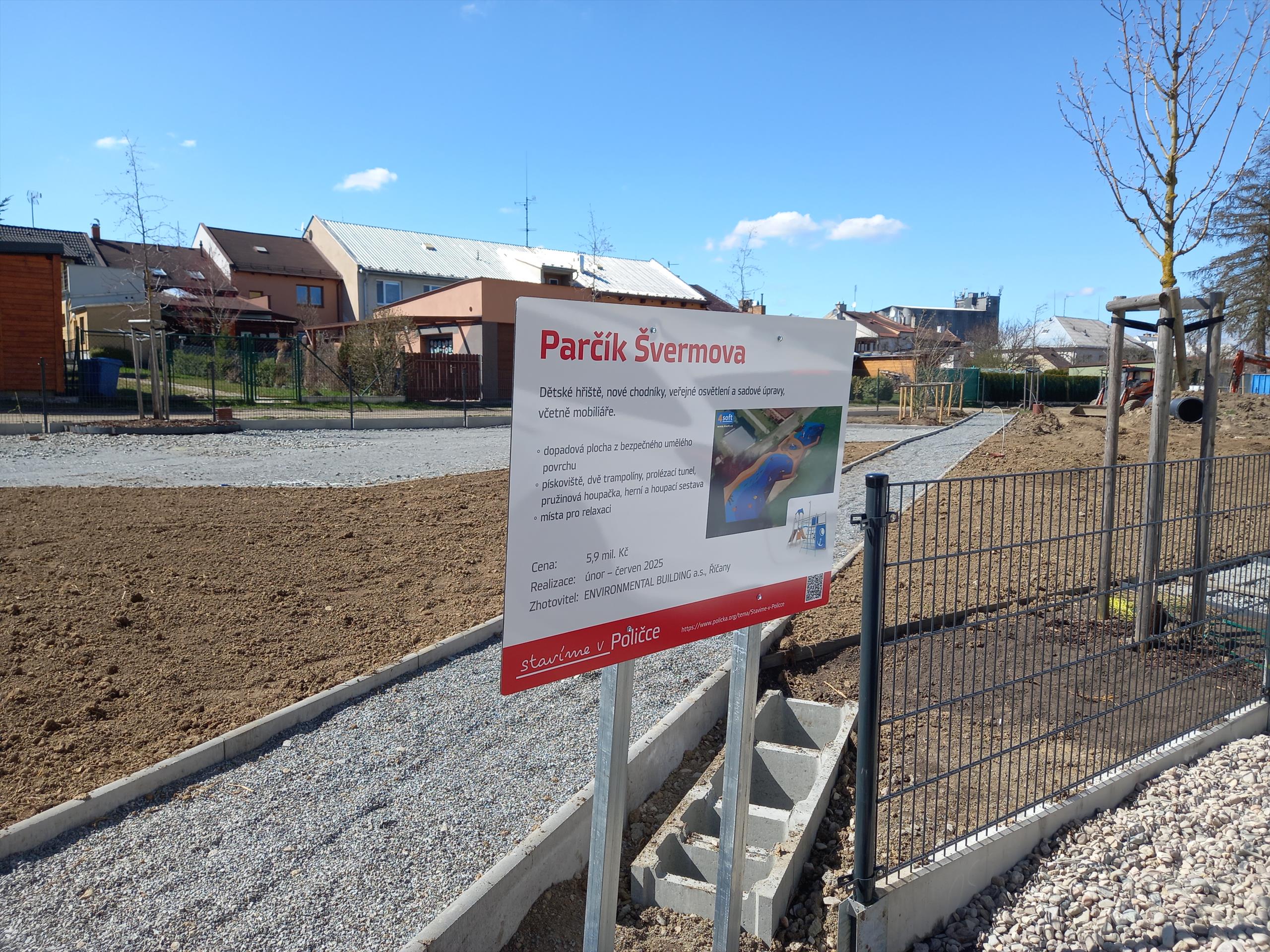 Na konci února tohoto roku byla zahájena stavba parčíku mezi ulicemi Švermova a Dukelská. Budují se tu nové chodníky a dětské hřiště, stavba zahrnuje i nové veřejné osvětlení a sadové úpravy. Děti se mohou těšit na moderní hřiště s dopadovou plochu z umělého polyuretanového povrchu, pískoviště, dvě trampolíny, pružinovou houpačku, herní a houpací sestavu a úžasný prolézací tunel.