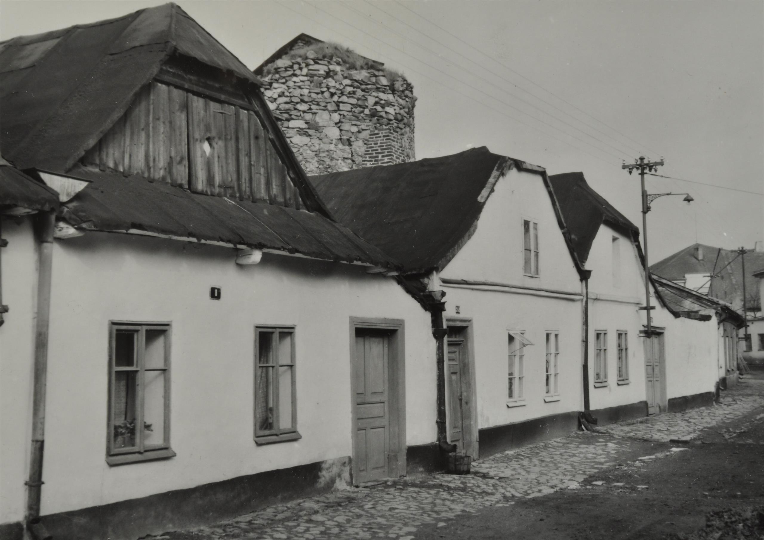 Destruction of the earth fortifications – while the main wall with bastions still stands today and is an unmissable landmark, other parts have disappeared. In front of the main wall was about 9m wide open grassy area (outer ward) bordered by a low outer enceinte parallel to the main wall. At the end of the 18th century, the town began to sell outer wards and small houses were built on them (18 in this street) – their façades stood on the site of the former outer enceinte. In front of it there was originally a moat up to 16m wide which was gradually filled in, in order to create a sufficiently wide street before the new houses. In 1899 – 1912, all the remains of the moats were conveyed into pipes and turned into sewers. Once there was a rampart in front of the moat (partially preserved in the park, here in the Misery Street it has completely disappeared except for a short section).
