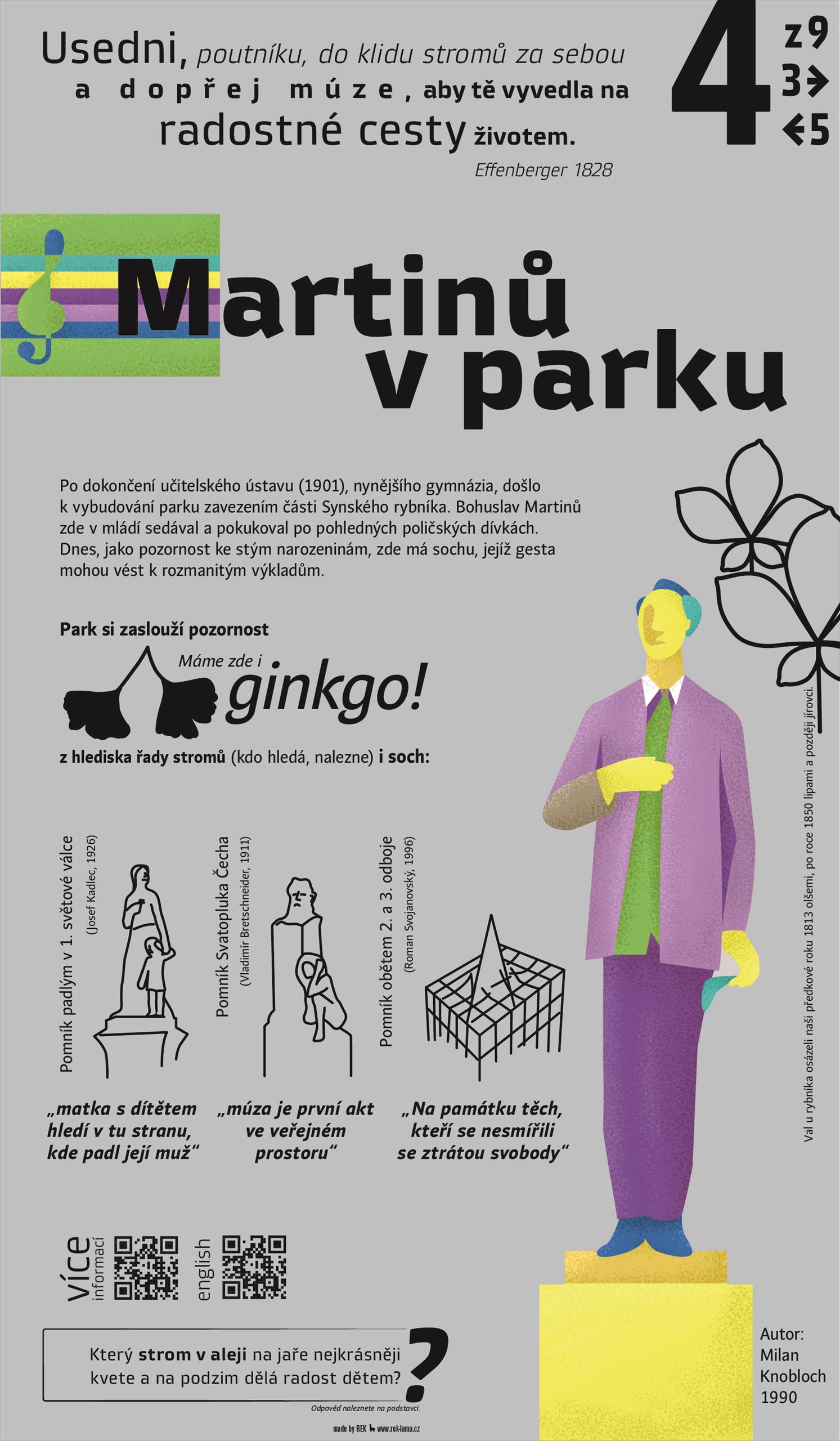 Stručné dějiny – při výkopových pracích na stavbě učitelského ústavu byl materiál použit k zavezení mělké východní části rybníku. Od r. 1902 se začalo s úpravou parku dle návrhu školníka učitelského ústavu, který byl původně panským zahradníkem. Po r. 1906 byla upravována další část parku a vybudován pavilonek Sokola. Již v r. 1901 byl postaven Pražskou mostárnou železný nýtovaný most, který je nyní technickou památkou (na jeho začátku od gymnázia je litinová firemní deska). V parku je několik soch, které můžete snadno vypátrat.