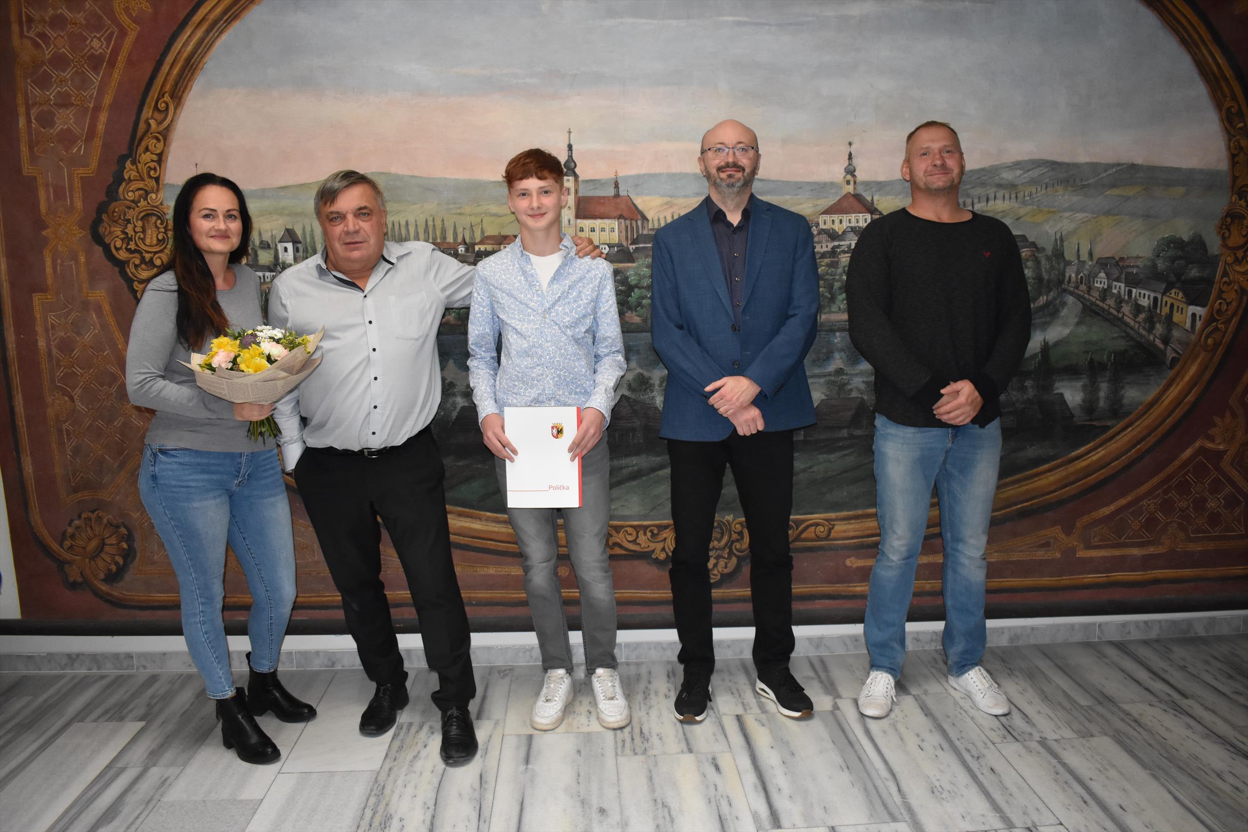 „Jsme na Tebe moc pyšní a velmi si Tvého činu vážíme, myslím, že naši občané by měli takovou dobrou zprávu vědět,“ ocenil Matyáše starosta města Jaroslav Martinů. Ten společně s místostarostou Liborem Jelínkem poděkoval Matyášovi v doprovodu jeho rodičů za statečný čin při osobním setkání. Kromě velkého poděkování obdržel Matyáš šek na výběr odměny dle svého výběru v hodnotě 1000 korun.
