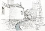 Uzavřený prostor před kostelem, vstup do kostela bude po chodníku bočním vstupem od ul. Kostelní