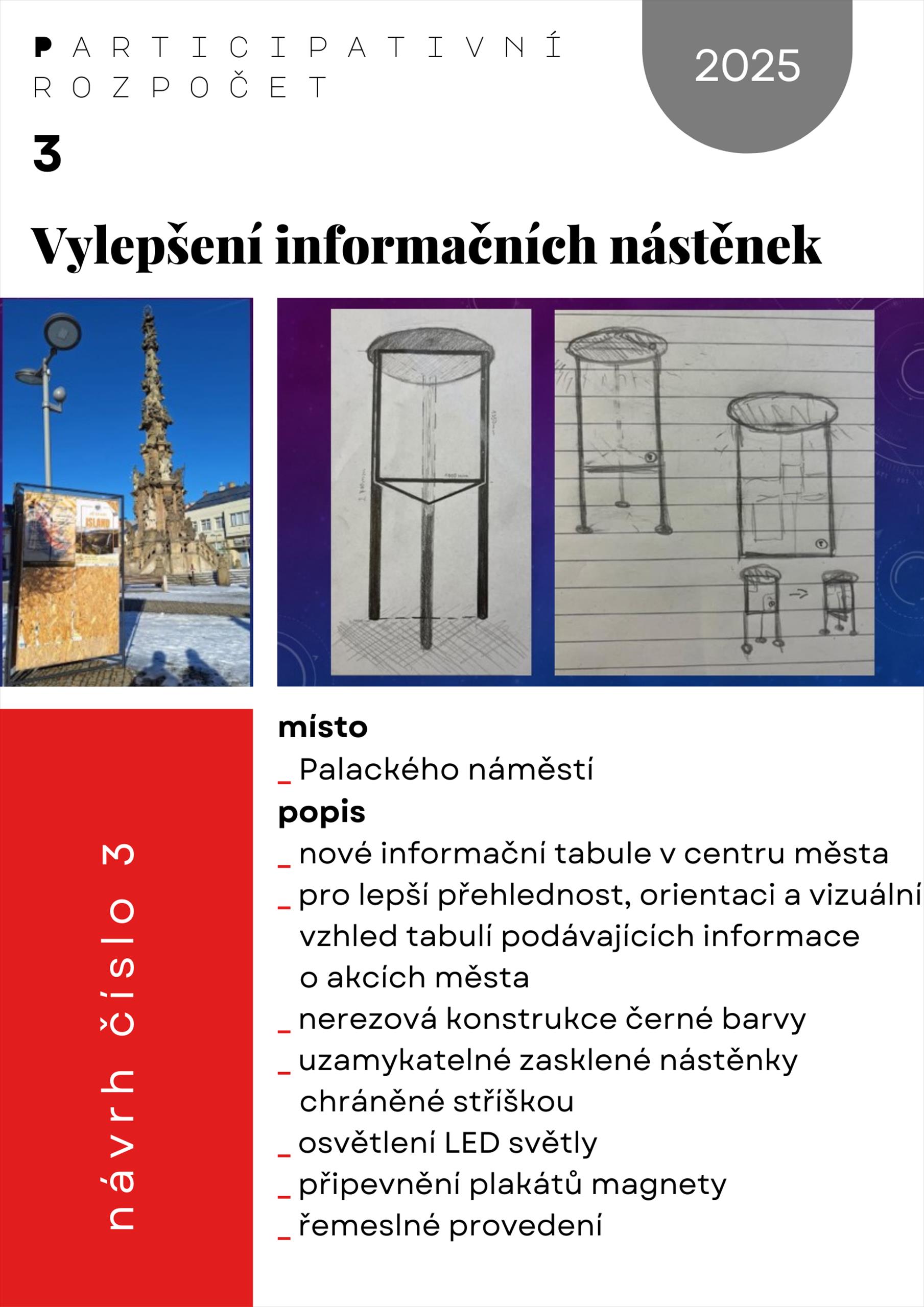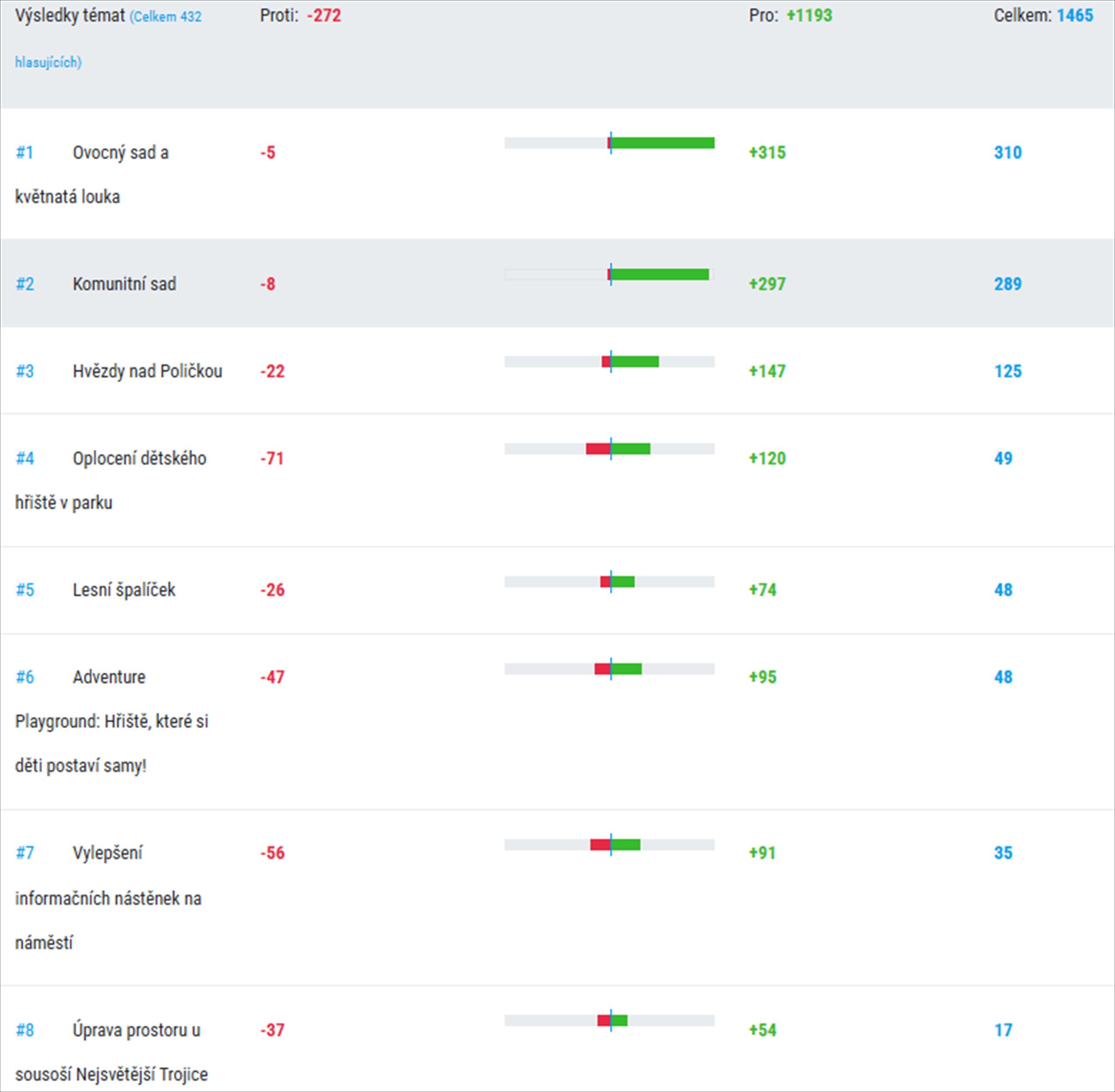 Ve třetím ročníku participativního rozpočtu bylo podáno 9 zajímavých návrhů. Po projednání projektů pracovní skupinou pro participaci a konzultacích s úředníky, odborníky a navrhovateli jich bylo zařazeno do hlasování 8.